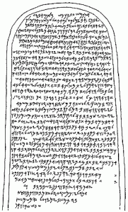 The Mesha Inscription (see actual text below) gives us “the rest of the story.” It reads, in fact, like a chapter from the Old Testament. Its language, terminology and phraseology are exactly the same as what we find in the Bible. Mesha credits his successful revolt and recapture of Moabite territory, as well as other accomplishments, to Chemosh, national god of Moab. He does not, of course, record his defeat in the south at the hands of the coalition armies. Similarly, although the Bible records Mesha’s revolt, it gives no details on his successes. So each record, accurate in its own way, records events from a different perspective.